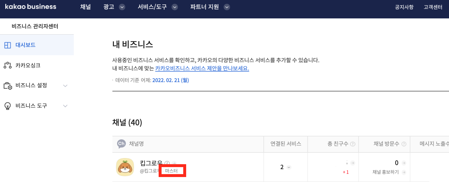 2. 카카오 채널 관리자 센터에서 확인해주세요.