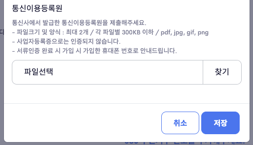 그 다음 과정이 반드시 필요한데요, 해당 번호를 발급한 통신사로부터 "통신이용등록원"이라는 서류를 발급받아 이미지 파일로 올려주셔야 합니다.