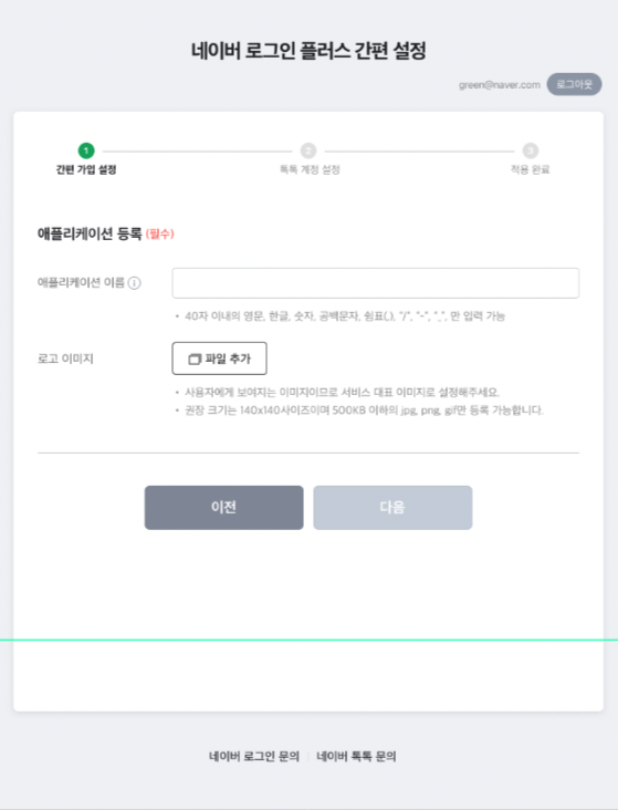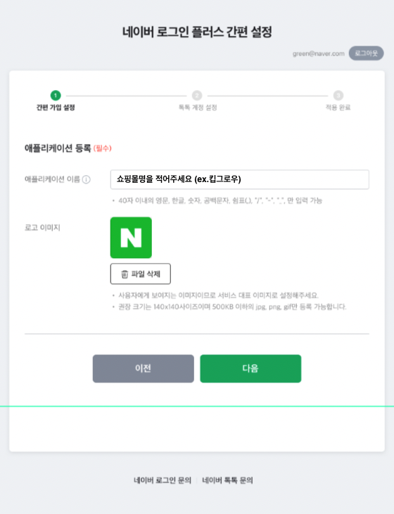 [애플리케이션 등록] > 이름, 로고이미지 입력 > [다음]